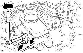 (a) Using a union nut wrench (10 mm), disconnect the 2 brake lines from the brake master cylinder sub-assembly.