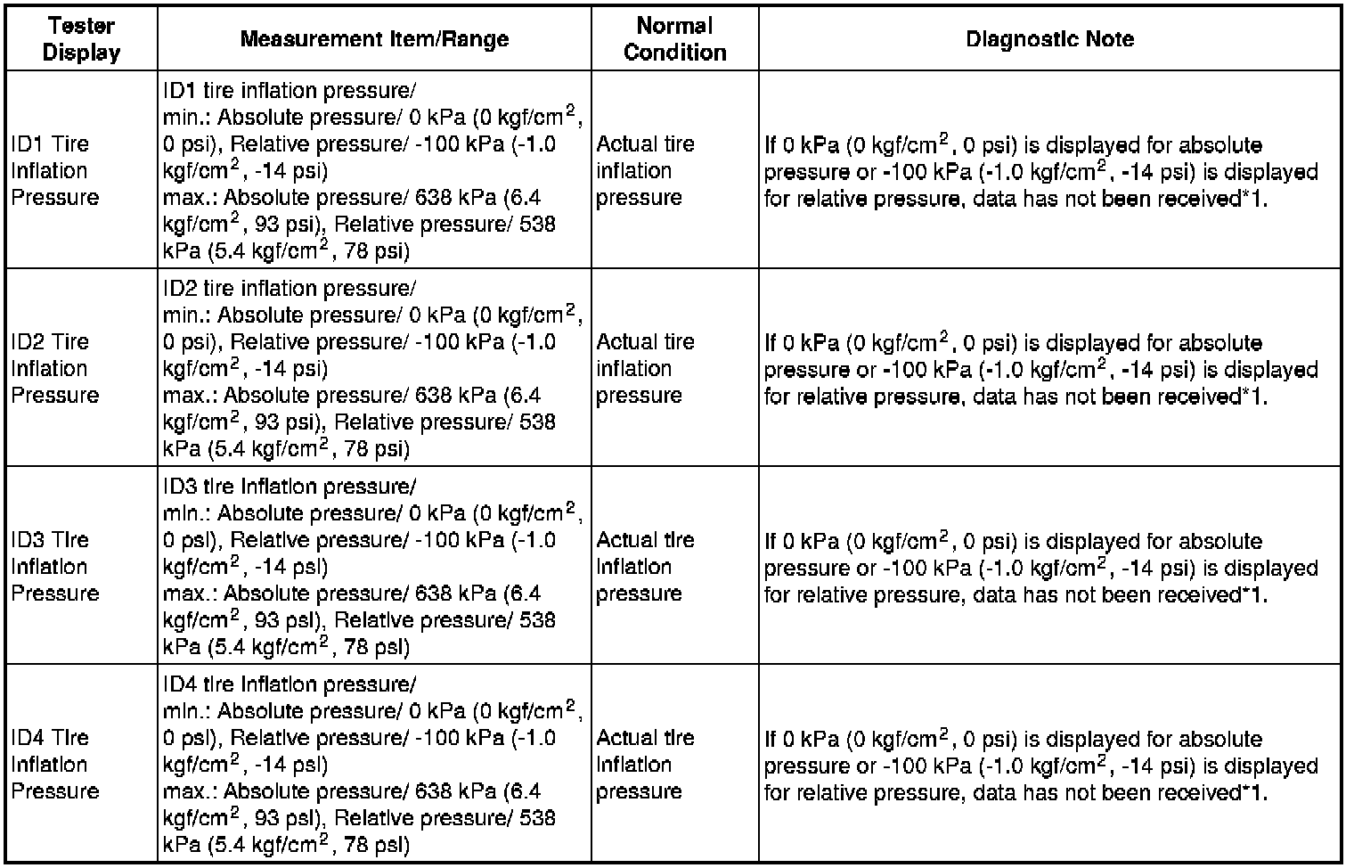* If the tire pressure values are not displayed after a few minutes, the IDs may be incorrect or the system may have a malfunction.