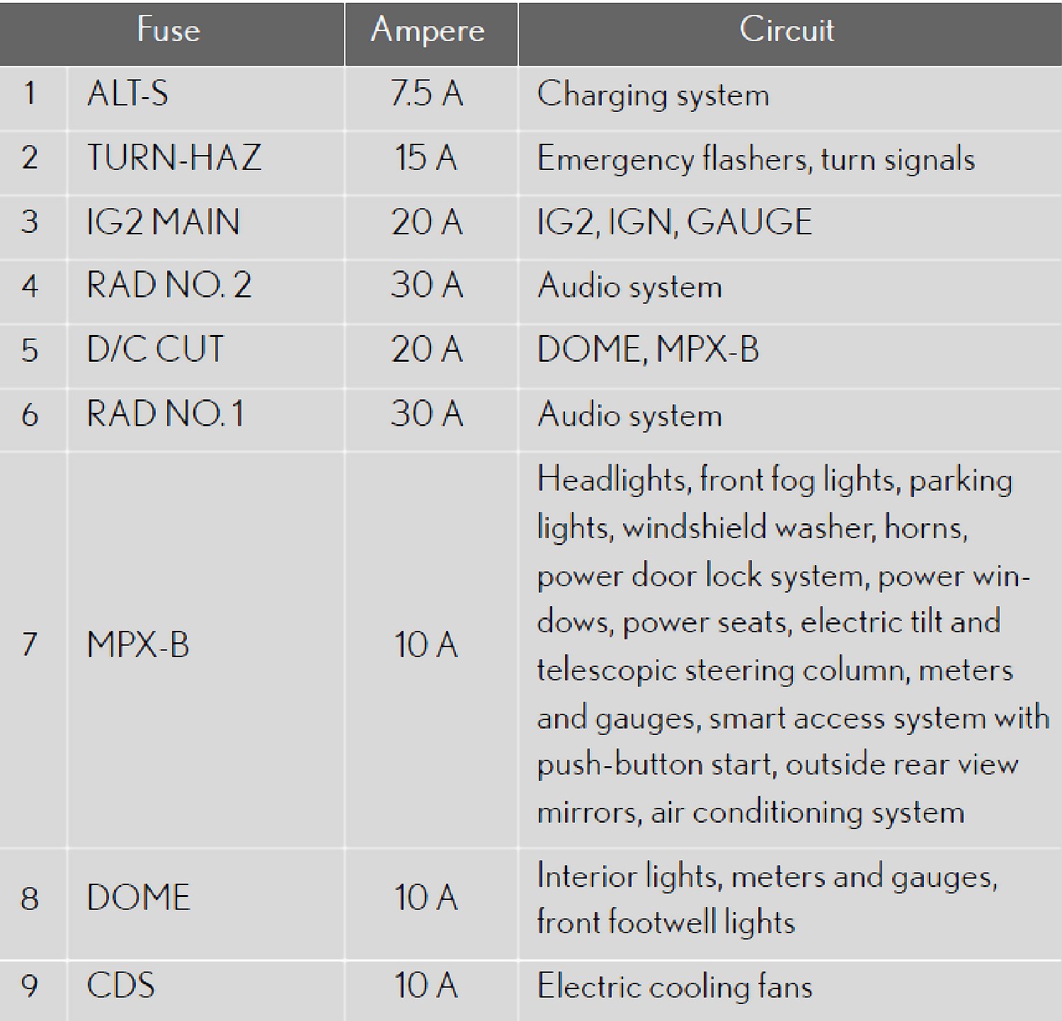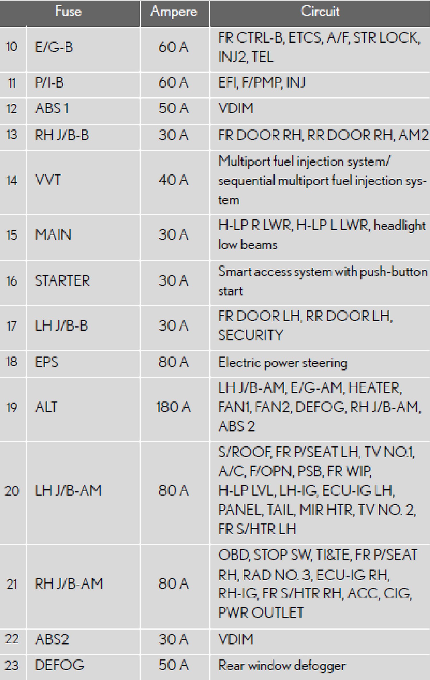 Fuse Layout and Amperage RatingsFuse Block Location - Engine Compartment (Type A):