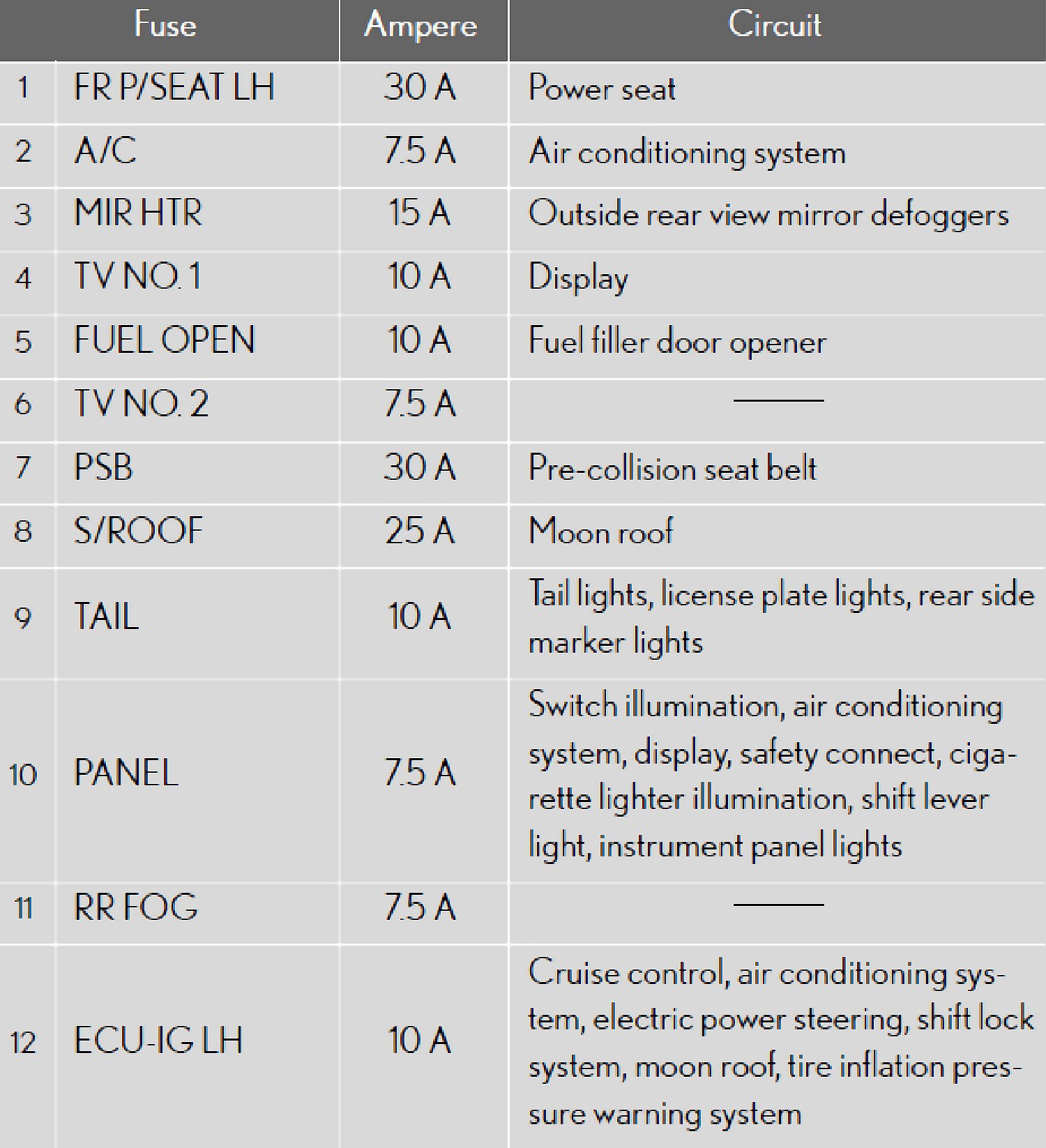 Fuse Location - Driver's Side Instrument Panel: