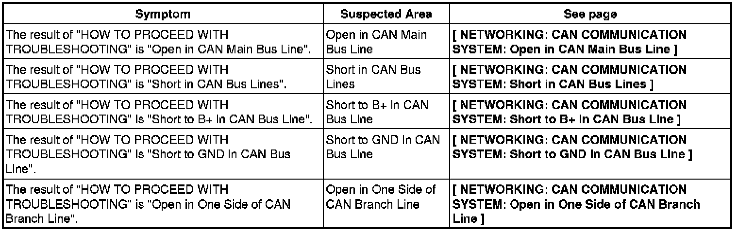 NETWORKING: CAN COMMUNICATION SYSTEM: PROBLEM SYMPTOMS TABLE