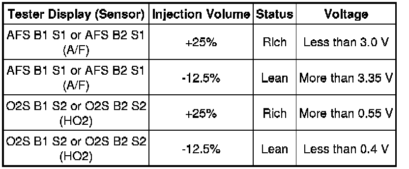 * The Control the Injection Volume for A/F sensor operation lowers the fuel injection volume by 12.5% or increases the injection volume by 25%.