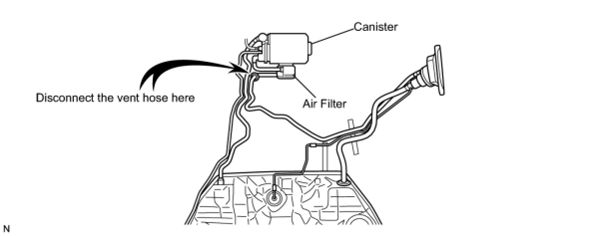 When replacing the canister, check the canister pump module interior and related pipes for water, fuel and other liquids. If liquids are present, check for disconnections and/or cracks in the following: 1) the pipe from the air inlet port to the canister pump module; 2) the canister filter; and 3) the fuel tank vent hose.