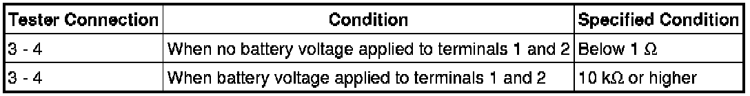 (1) Apply battery voltage to both terminals. Check that the pump operates.