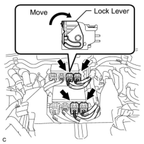 (d) Connect the 4 connectors with wire harness locks to the 2 injector drivers.