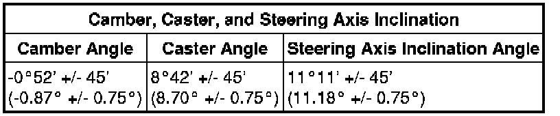 SPECIFICATIONS: ALIGNMENT / HANDLING DIAGNOSIS: SERVICE DATA