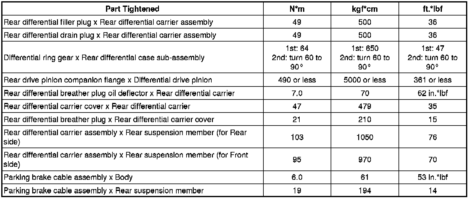 SPECIFICATIONS: AXLE AND DIFFERENTIAL: TORQUE SPECIFICATIONS