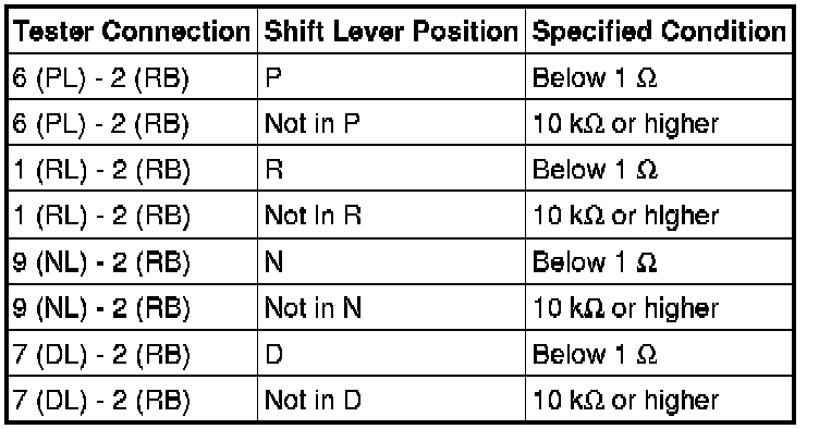 (a) Measure the resistance of the switch when the shift lever is moved to each position.