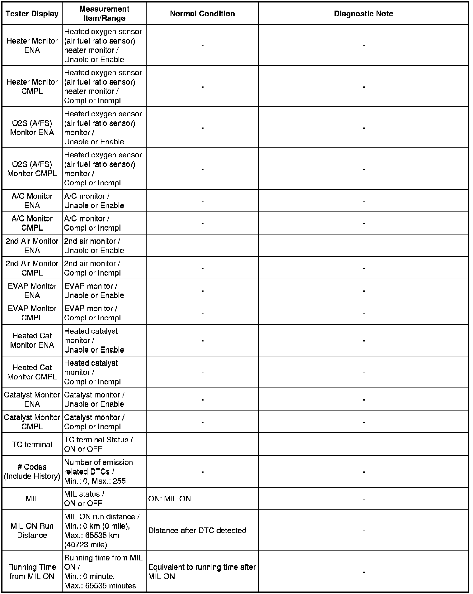 In the table below, the values listed under "Normal Condition" are reference values. Do not depend solely on these reference values when deciding whether a part is faulty or not.
