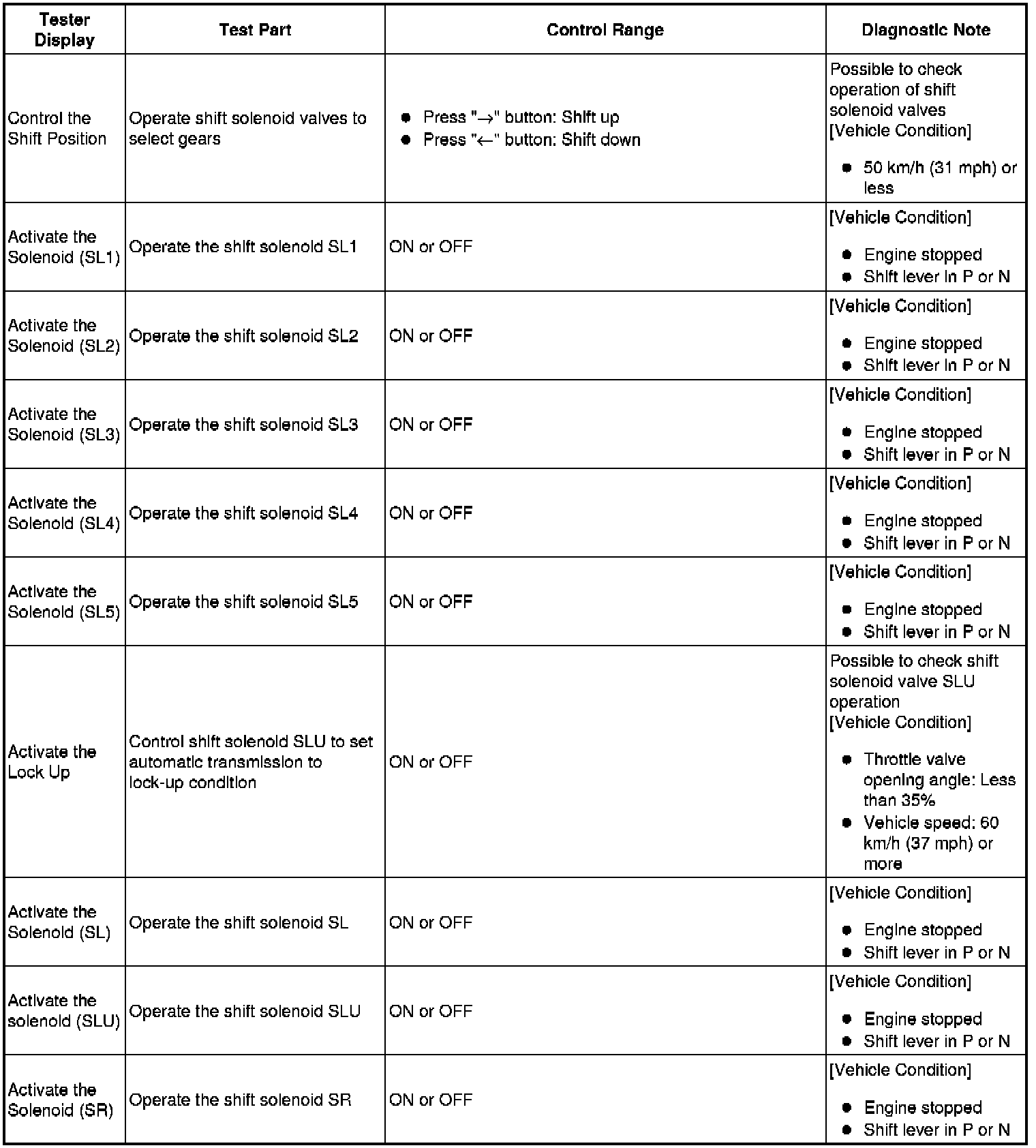 (g) *: The "Activate the solenoid (SLT)" Active Test is performed to allow confirmation that the line pressure changes. The line pressure changes are confirmed using the same SST that is used for the Hydraulic Test Hydraulic Test.
