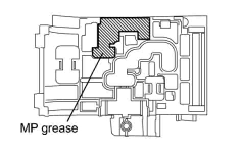 (a) Apply MP grease to the hatched area of the shift lever guide housing as indicated in the illustration.