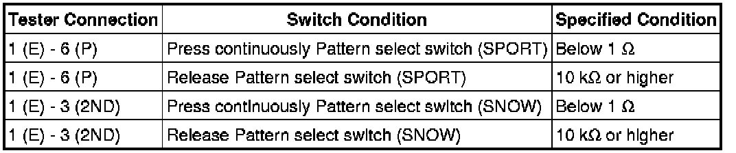AA80E AUTOMATIC TRANSMISSION / TRANSAXLE: PATTERN SELECT SWITCH: INSPECTION