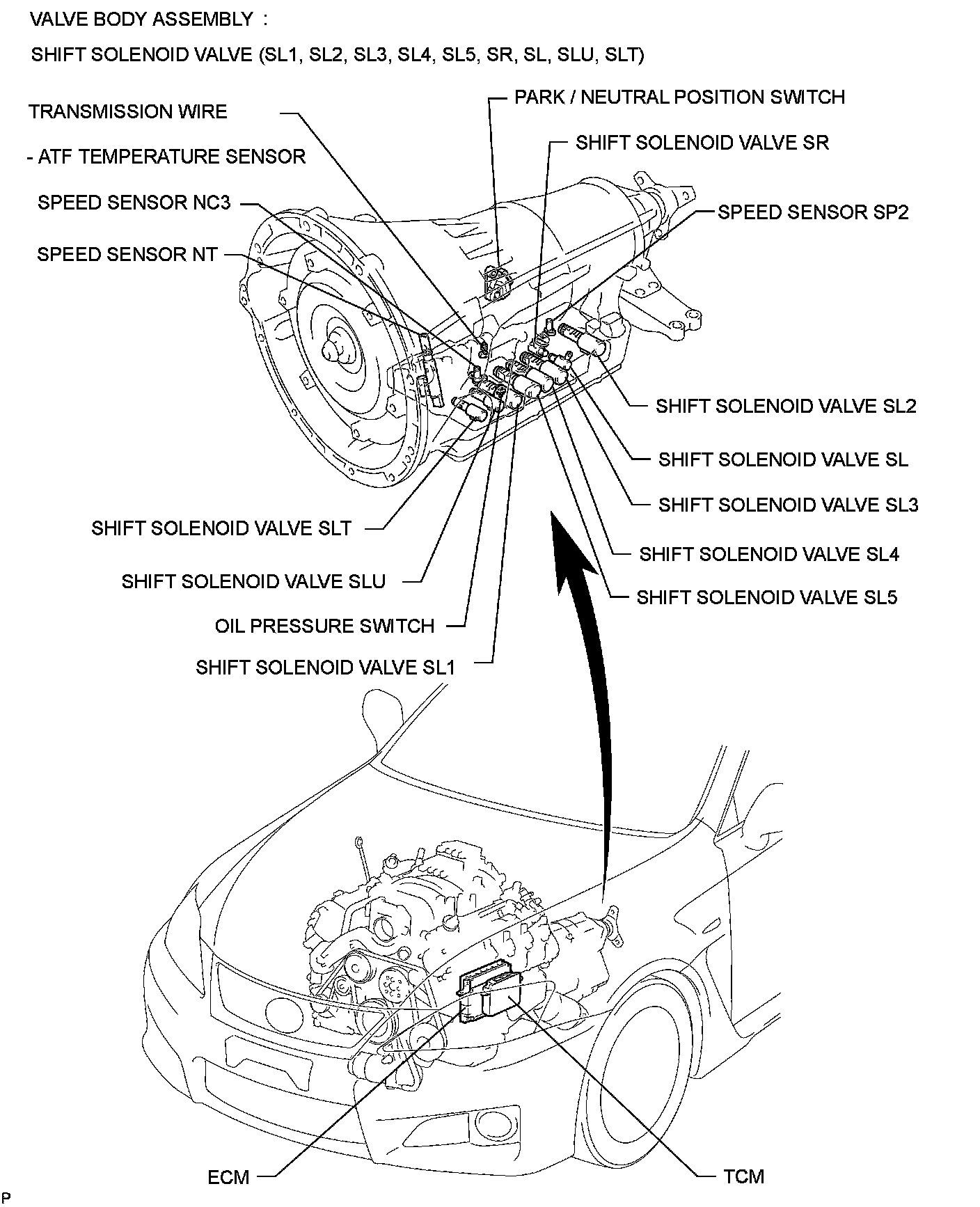 AA80E AUTOMATIC TRANSMISSION / TRANSAXLE: AUTOMATIC TRANSMISSION SYSTEM: PARTS LOCATION