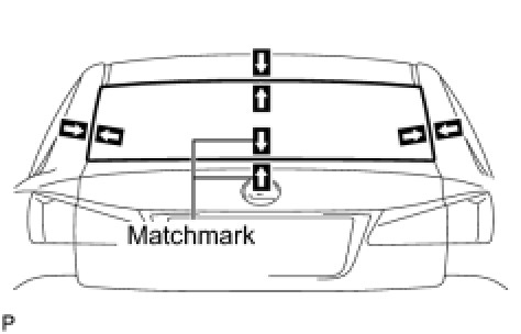 (g) Place matchmarks on the back window glass and vehicle body on the locations indicated in the illustration.