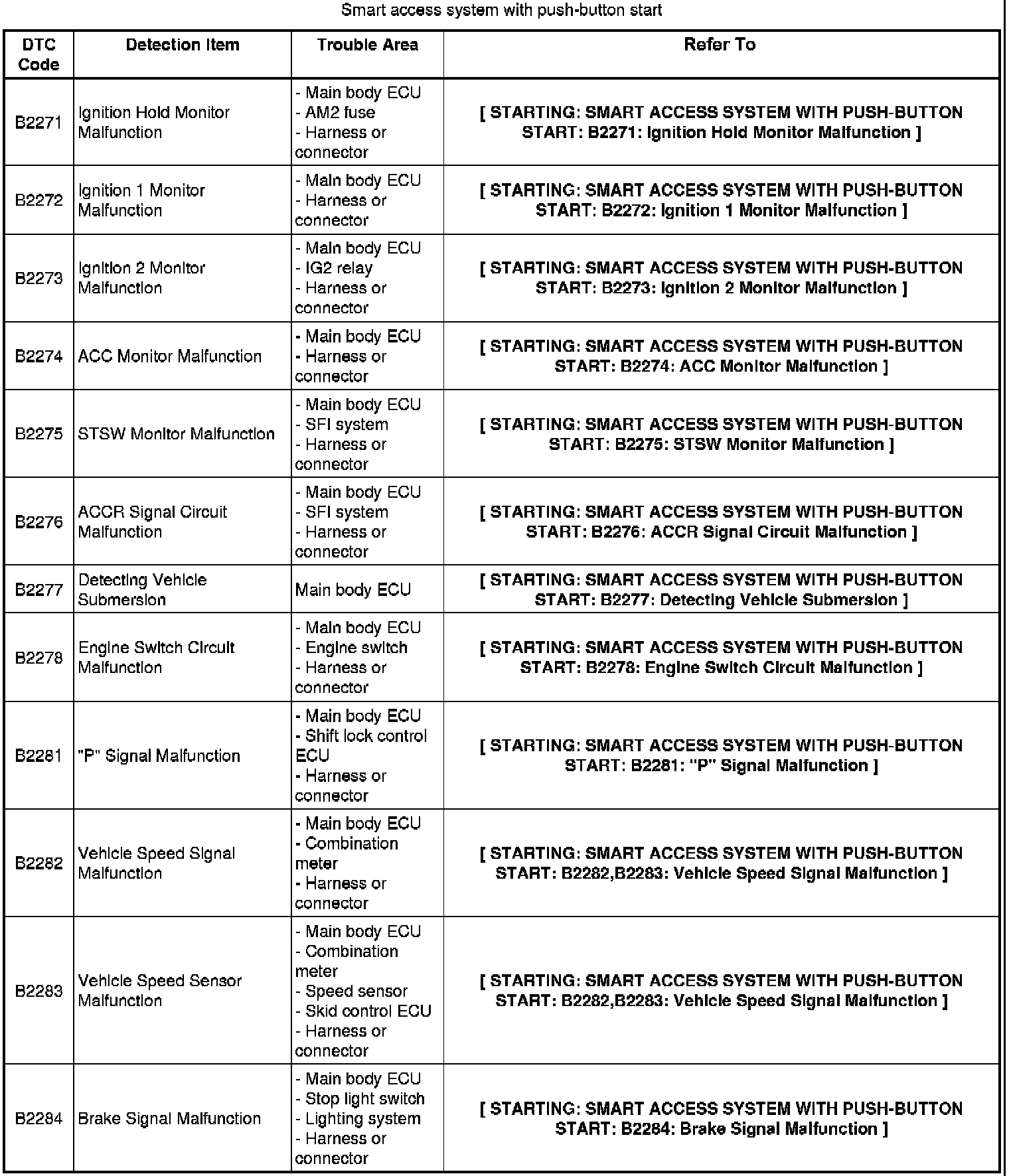 1UR-FSE STARTING: SMART ACCESS SYSTEM WITH PUSH-BUTTON START: DIAGNOSTIC TROUBLE CODE CHART