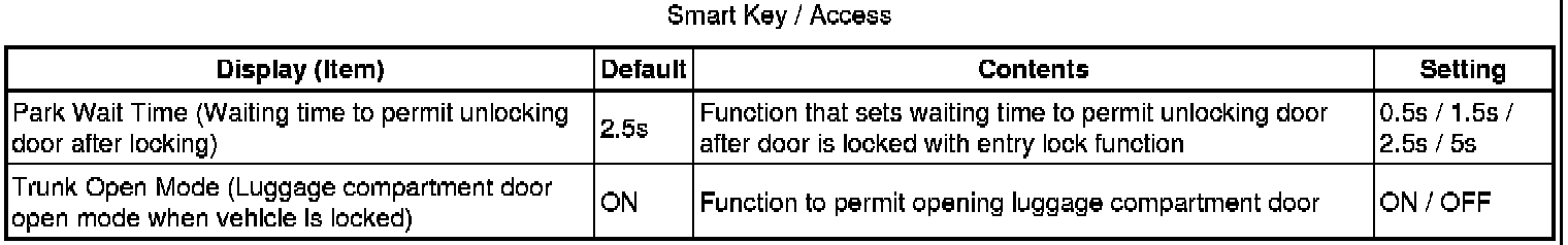The function only changes the entry unlock mode of the smart access system with push-button start. It does not switch the unlocking of the wireless door lock control.