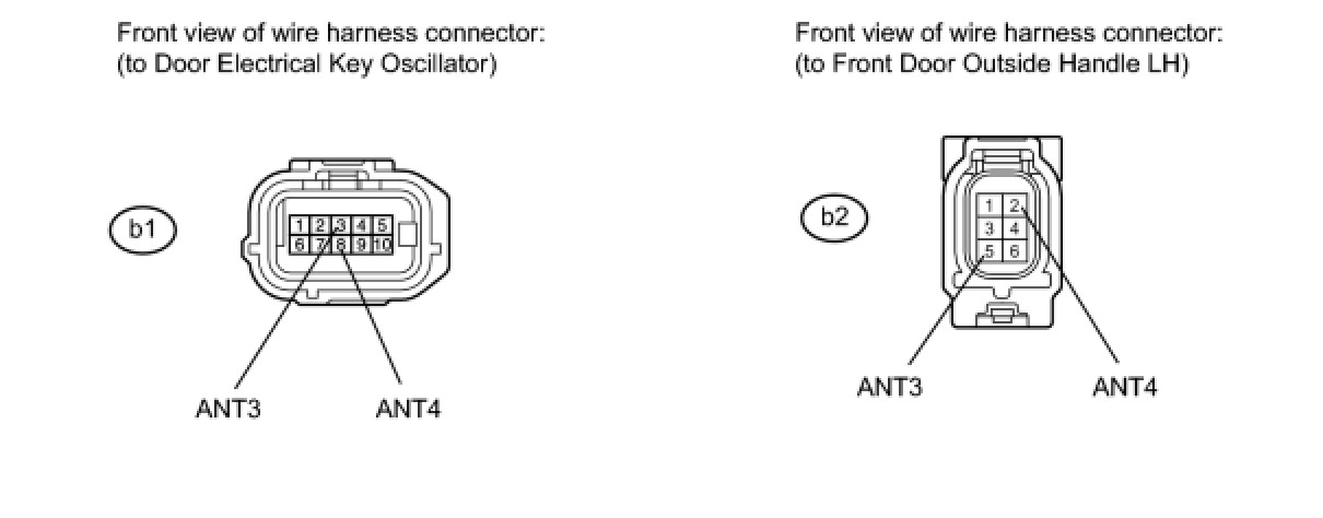 14. CHECK HARNESS AND CONNECTOR (DOOR ELECTRICAL KEY OSCILLATOR - FRONT DOOR OUTSIDE HANDLE LH)