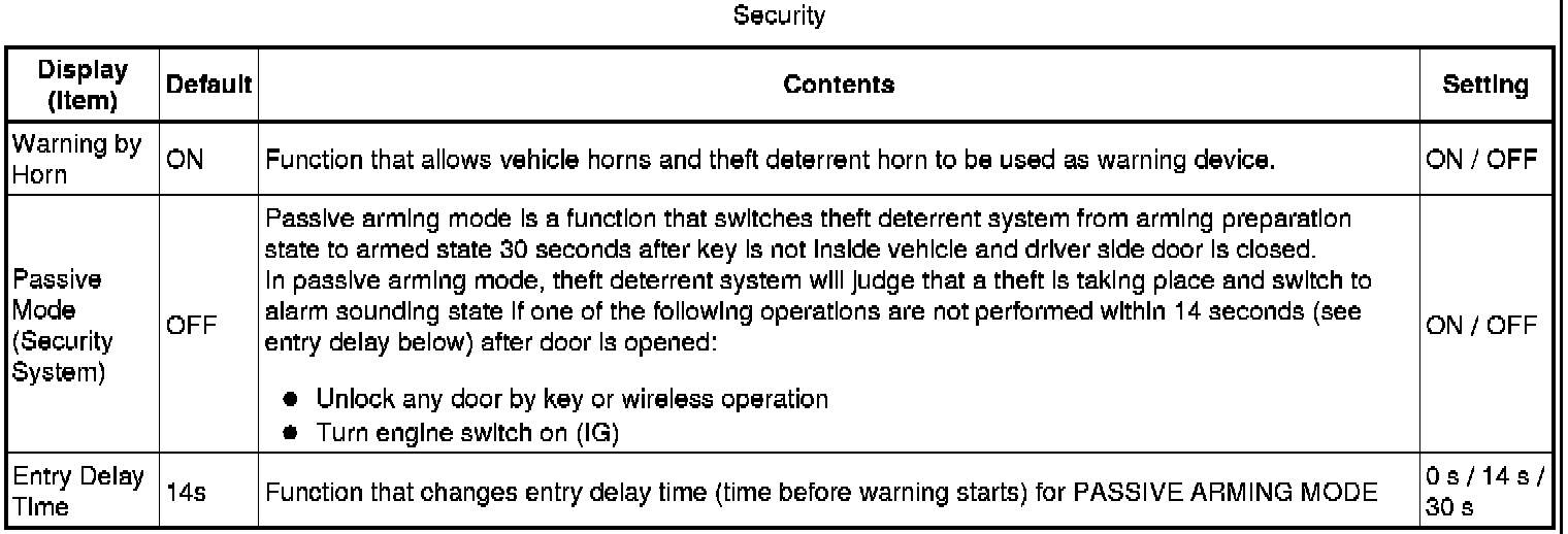THEFT DETERRENT: THEFT DETERRENT SYSTEM: CUSTOMIZE PARAMETERS