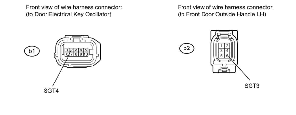 6. CHECK HARNESS AND CONNECTOR (DOOR ELECTRICAL KEY OSCILLATOR - FRONT DOOR OUTSIDE HANDLE LH)