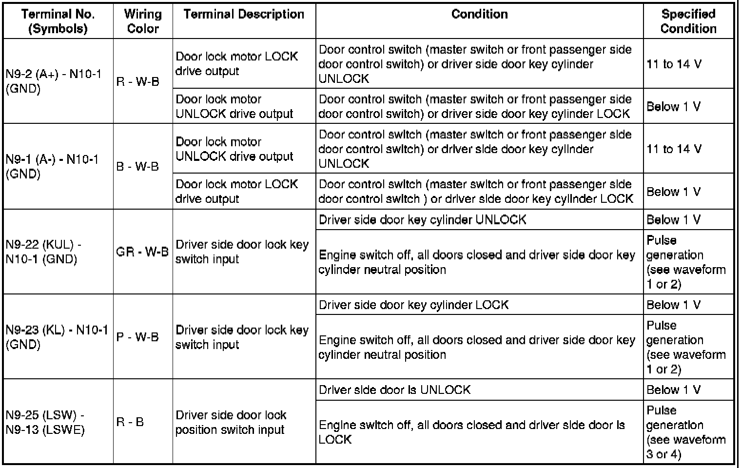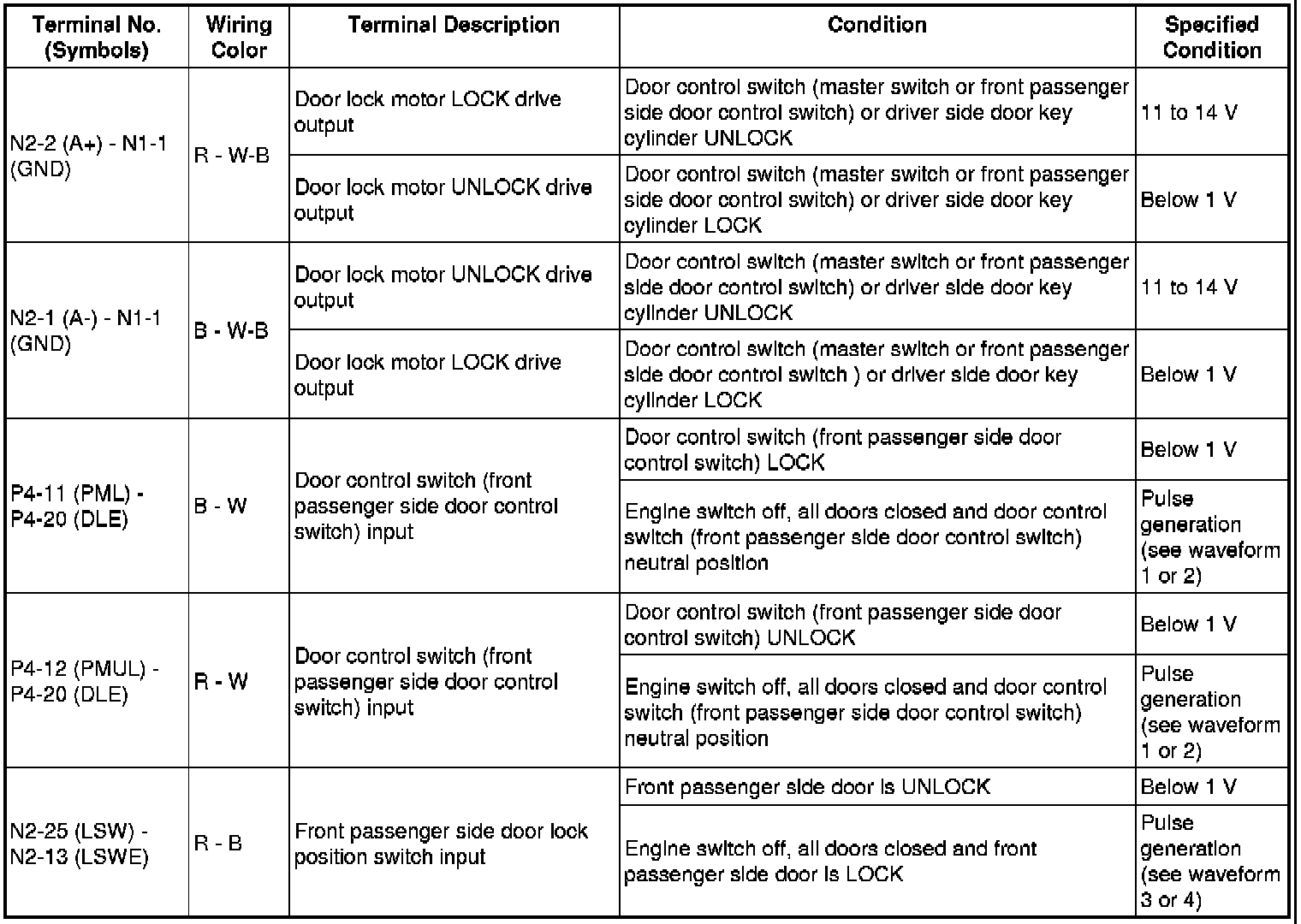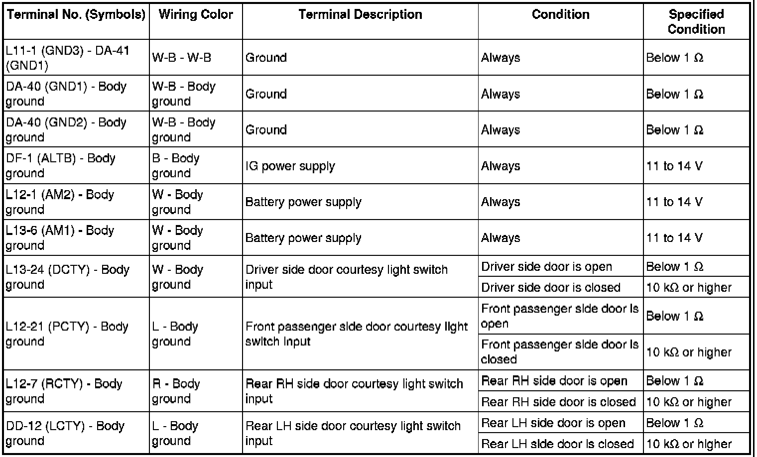 DOOR LOCK: POWER DOOR LOCK CONTROL SYSTEM: TERMINALS OF ECU