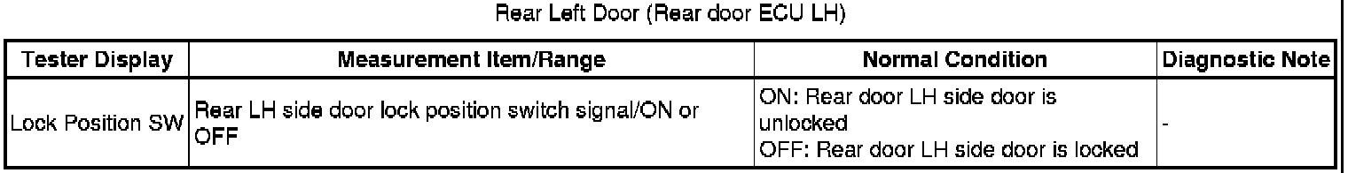 DOOR LOCK: POWER DOOR LOCK CONTROL SYSTEM: Only Rear Door LH LOCK / UNLOCK Functions do not Operate