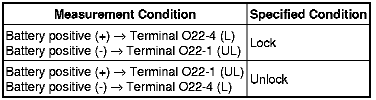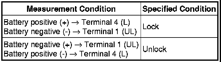 (1) Apply battery voltage to the door lock motor and check operation of the door lock motor.