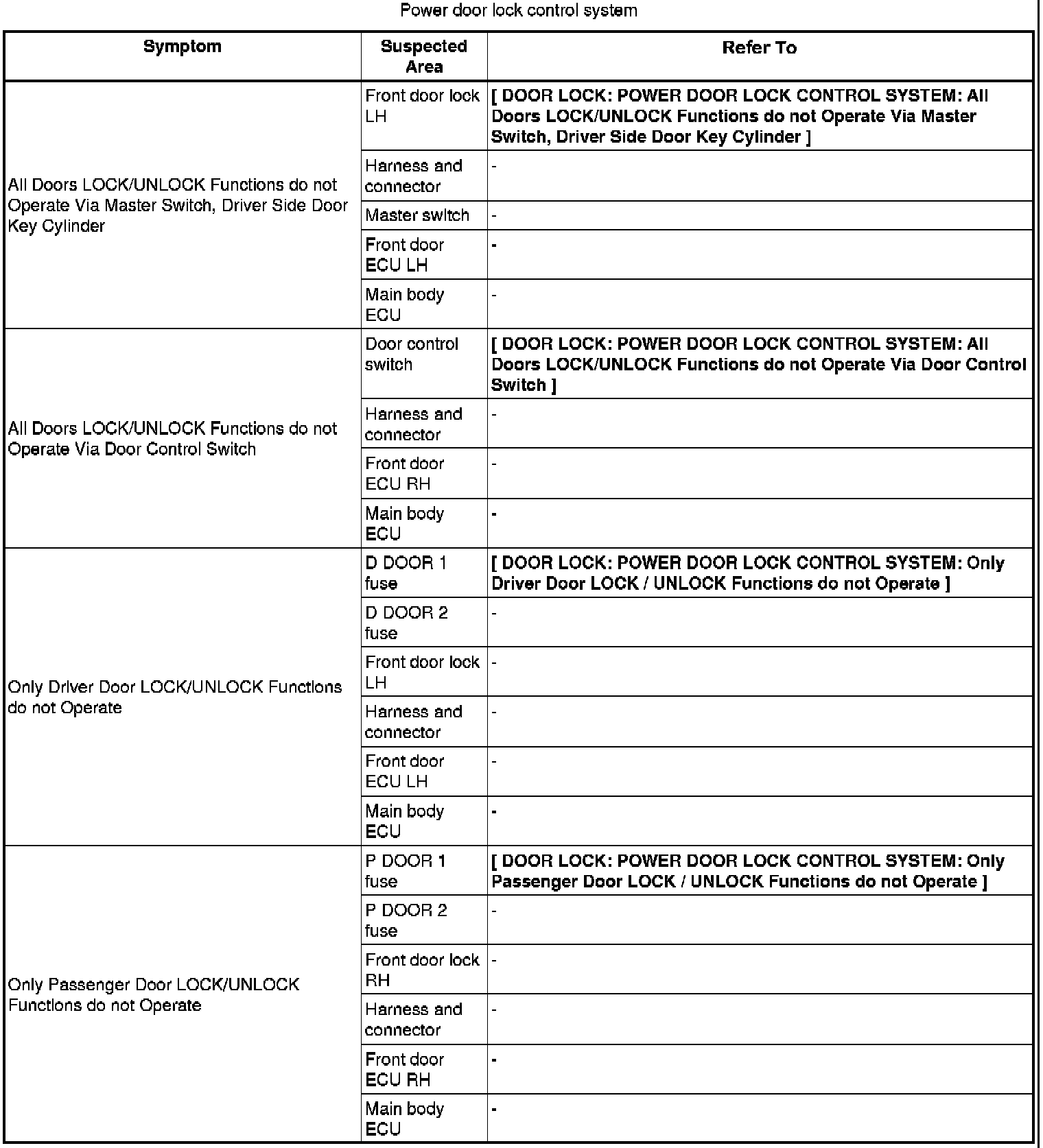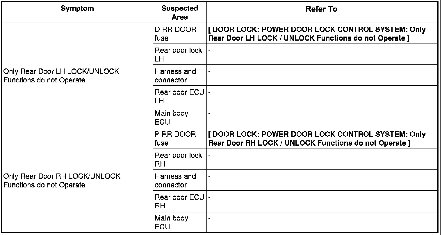 DOOR LOCK: POWER DOOR LOCK CONTROL SYSTEM: PROBLEM SYMPTOMS TABLE