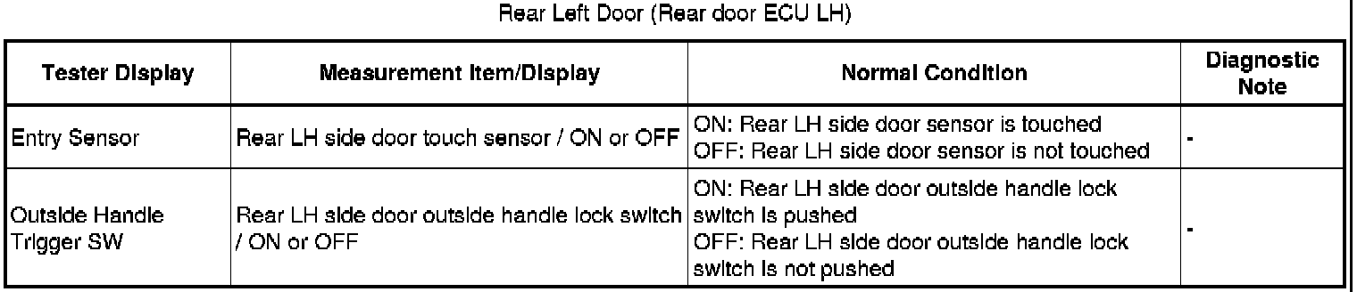 Rear Door LH Entry Lock and Unlock Functions Do Not Operate