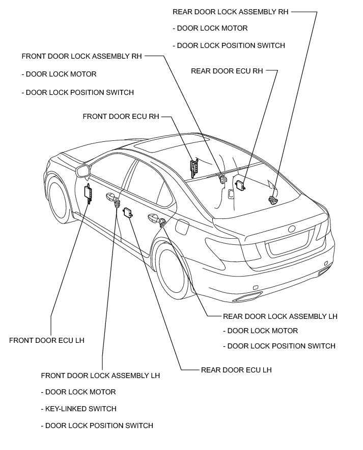 DOOR LOCK: POWER DOOR LOCK CONTROL SYSTEM: PARTS LOCATION