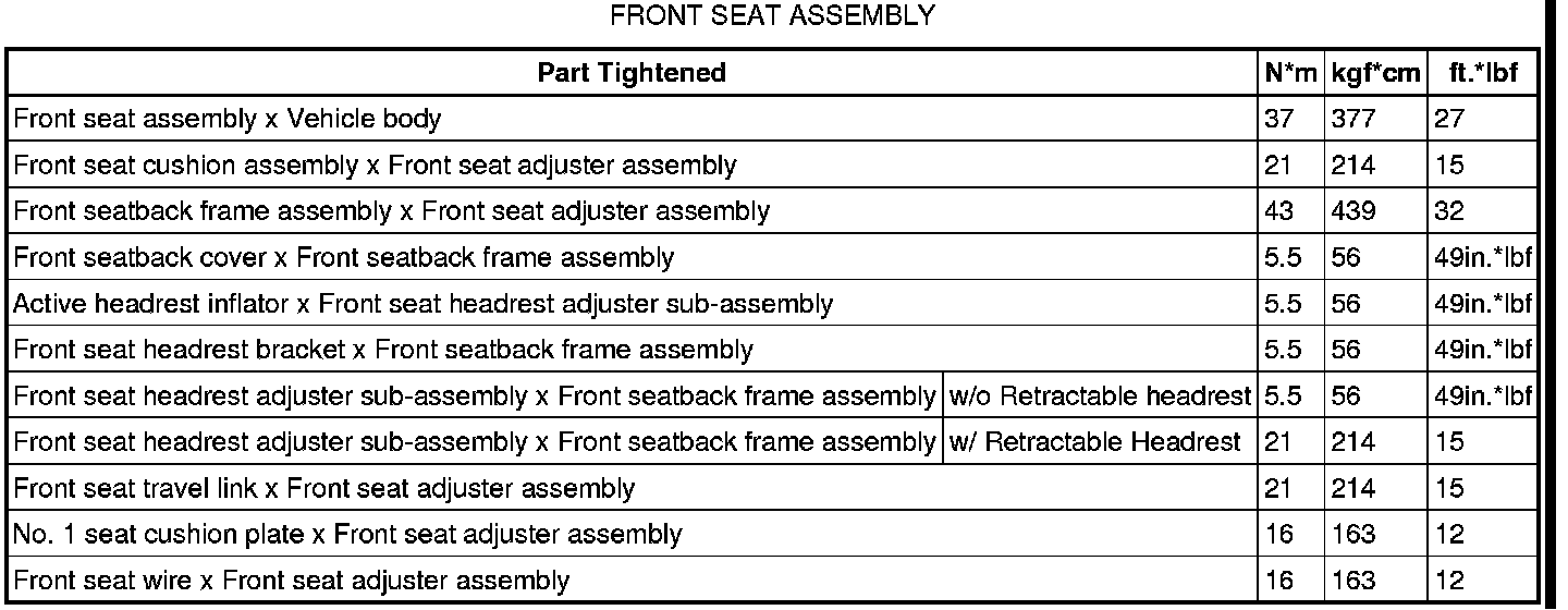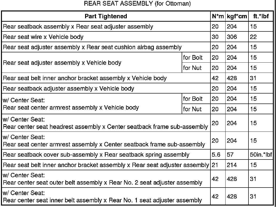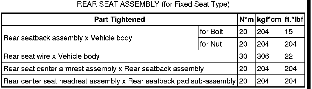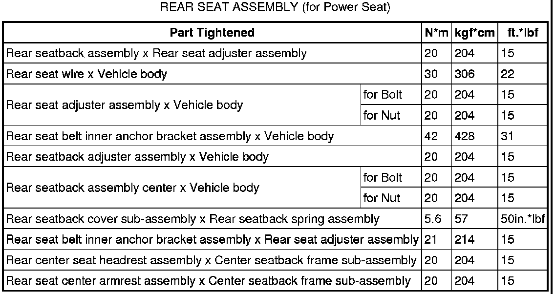 SERVICE SPECIFICATIONS: SEAT: TORQUE SPECIFICATIONS