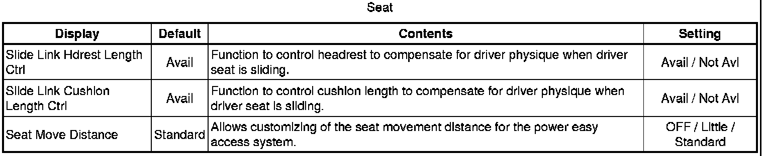 SEAT: FRONT POWER SEAT CONTROL SYSTEM: CUSTOMIZE PARAMETERS