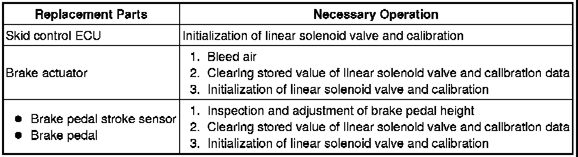 (a) Perform initialization of linear solenoid valve and calibration when the skid control ECU, brake actuator or brake pedal stroke sensor is replaced.