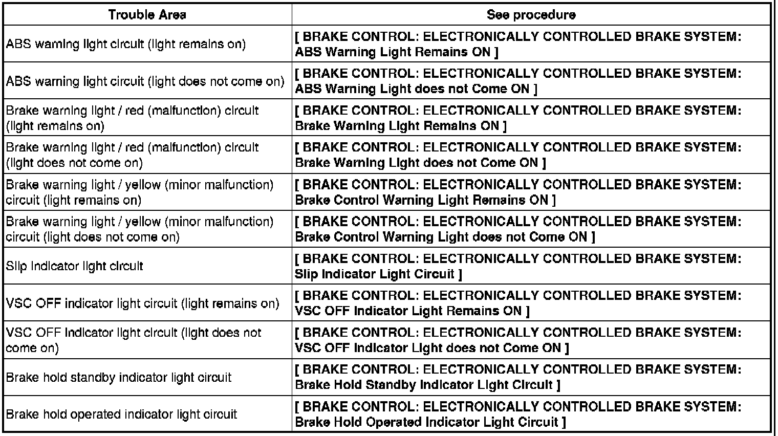 * See the list of DTCs Electronically Controlled Brake System.