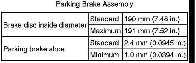 SERVICE SPECIFICATIONS: PARKING BRAKE: SERVICE DATA