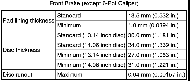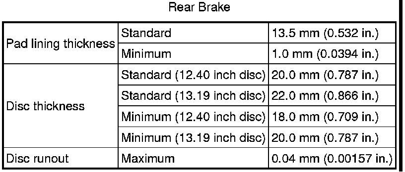 SERVICE SPECIFICATIONS: BRAKE: SERVICE DATA