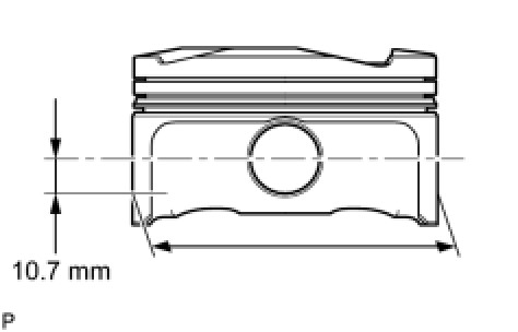 (a) Using a micrometer, measure the piston diameter at a position that is 10.7 mm (0.421 in.) downward from the center of the piston pin hole (refer to the illustration).