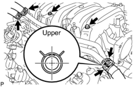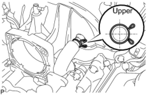 Make sure that the No. 3 water by-pass hose clamp is facing as shown in the illustration.