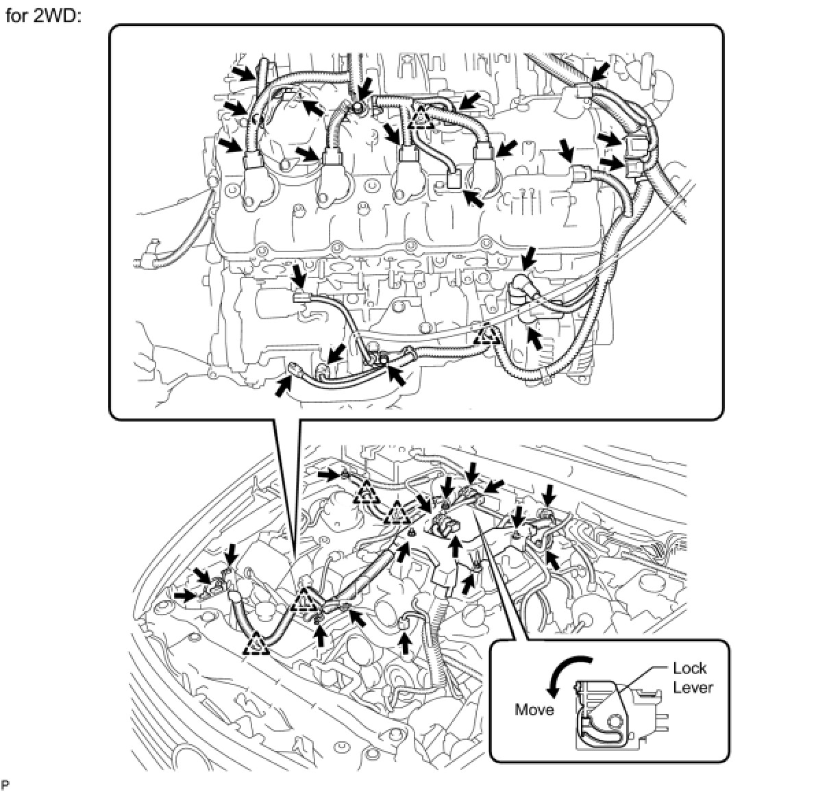 To connect the injector driver connectors, move the lock lever to lock the connector.