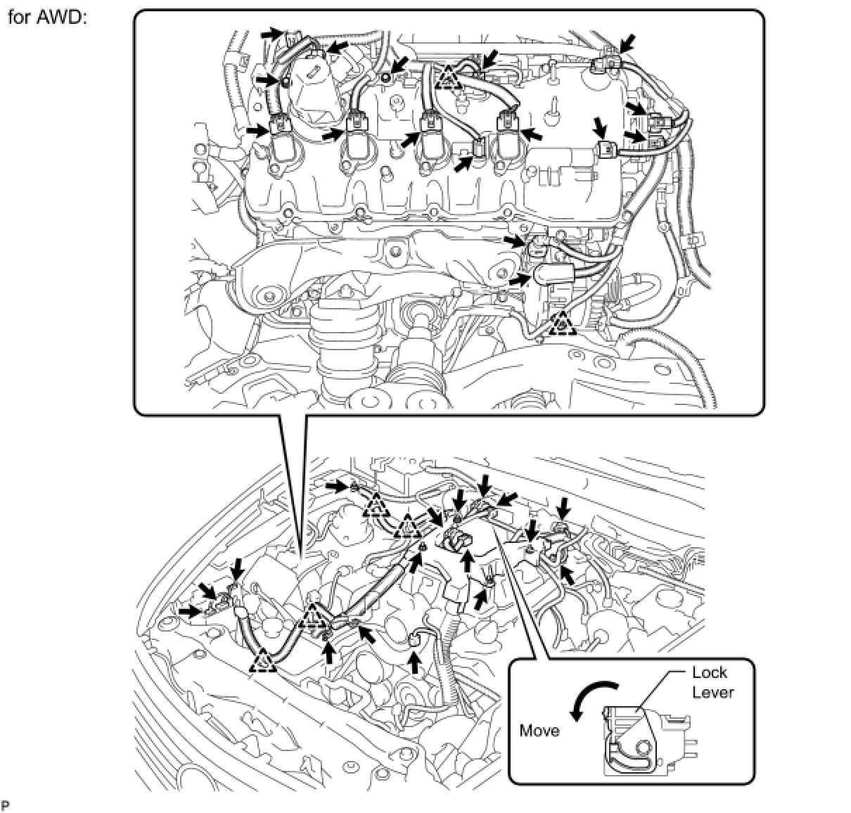 (6) Install the 4 engine wire harness clamp brackets with the 4 bolts.