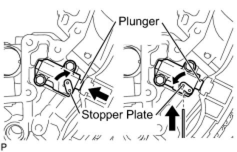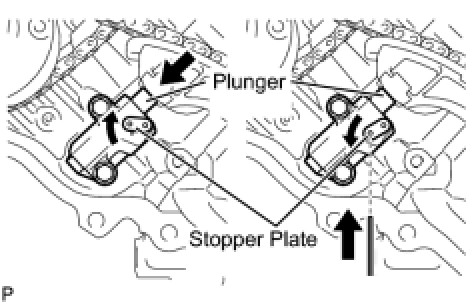 (a) Move the stopper plate upward to release the lock and push the plunger deep into the tensioner.