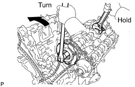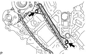 (a) While raising up the No. 2 chain tensioner, insert a pin of dia1.0 mm (0.039 in.) into the hole to fix it in place.