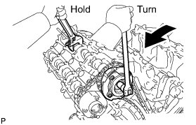 (b) Hold the hexagonal portion of the camshaft with a wrench and loosen the bolt with a 12 mm hexagon wrench.