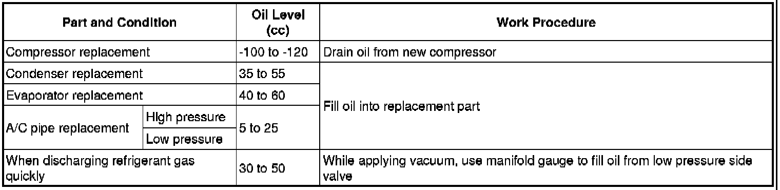 (a) When performing work on air conditioning parts, follow the oil guidelines below in order to protect the cooler compressor.