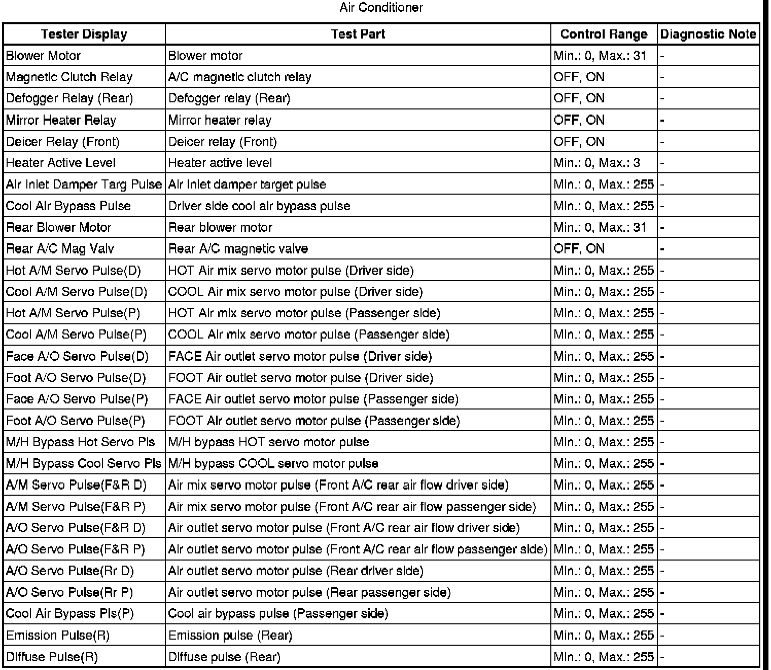 AIR CONDITIONING: AIR CONDITIONING SYSTEM: DATA LIST / ACTIVE TEST