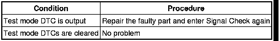 * When signal check returns to normal mode, all the test mode DTCs will be erased.