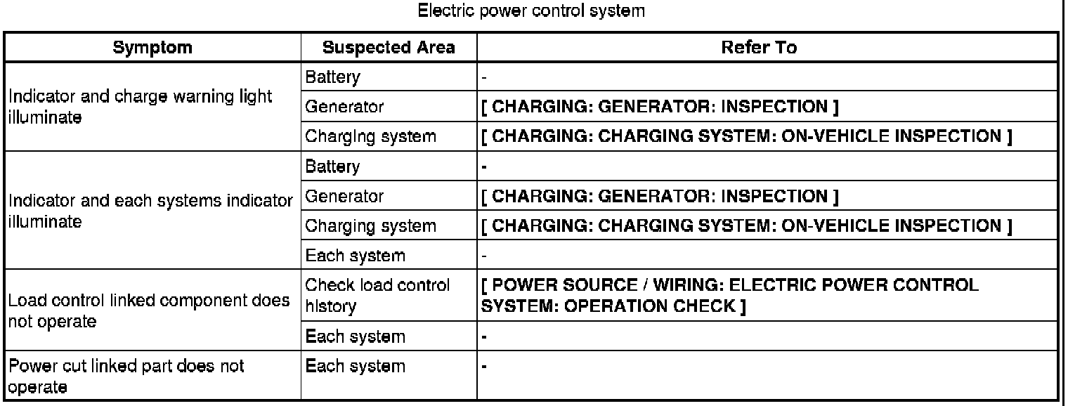 POWER SOURCE / WIRING: ELECTRIC POWER CONTROL SYSTEM: PROBLEM SYMPTOMS TABLE