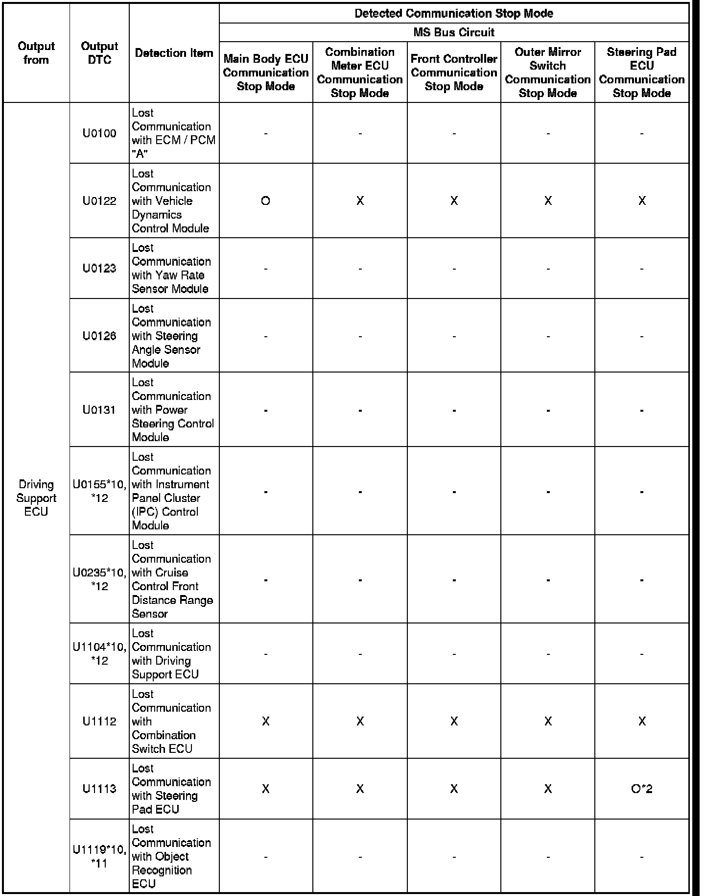 * *12: Refer to the Diagnostic Trouble Code Chart CAN Communication System.