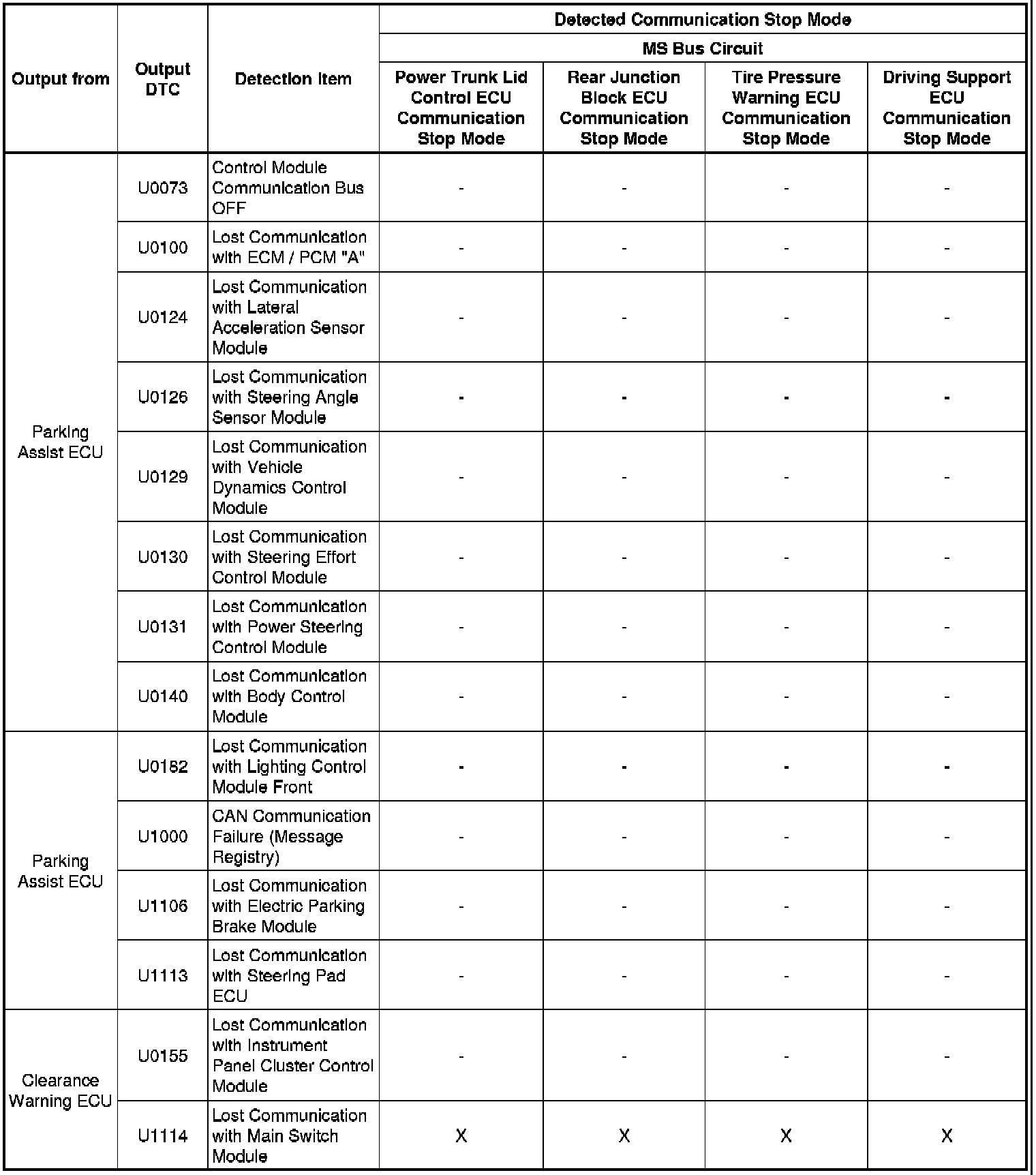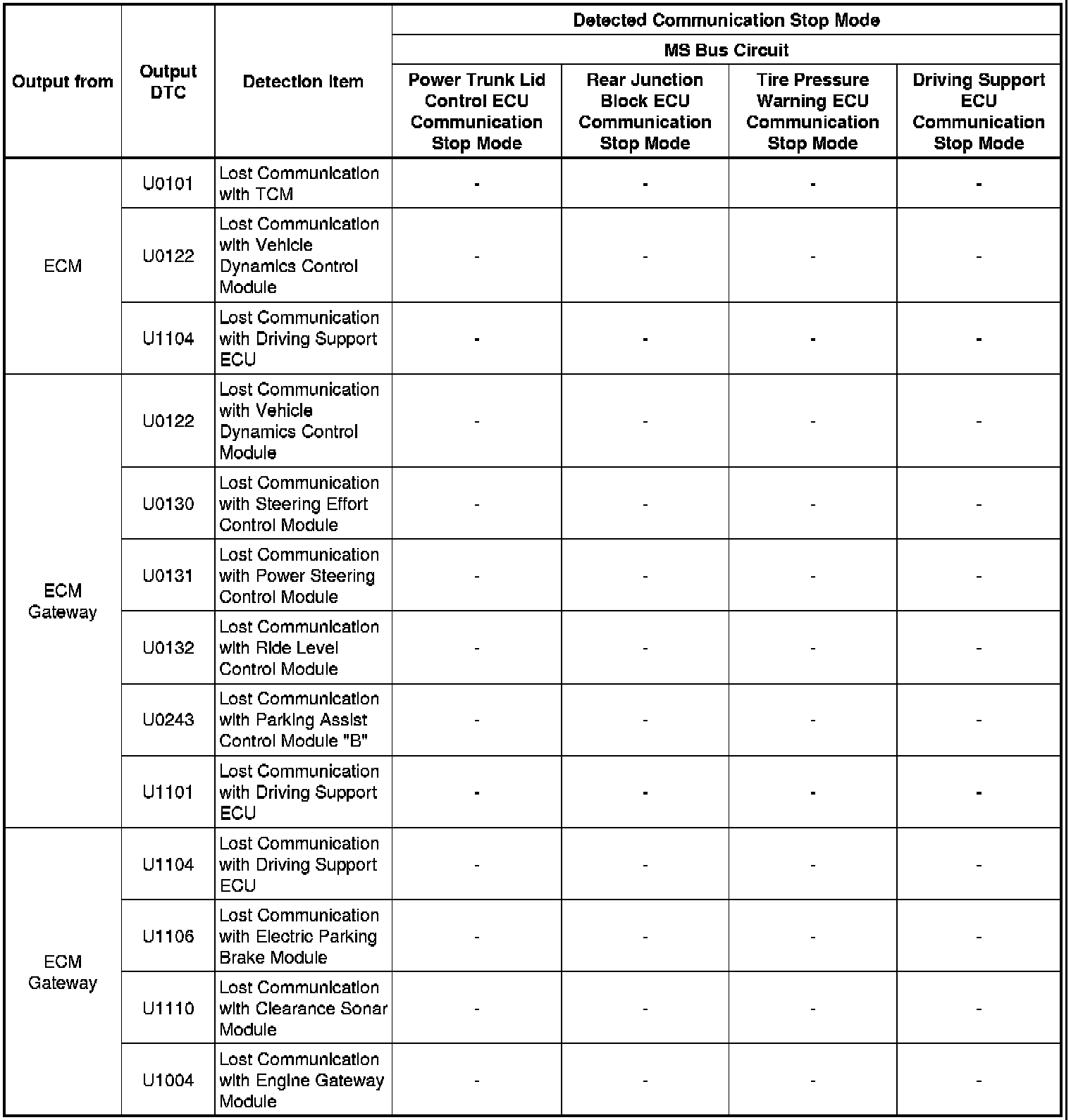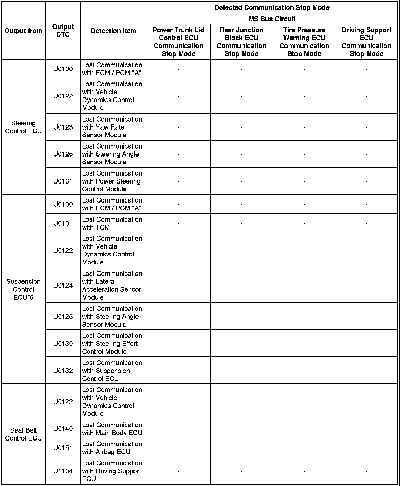 * *6: Only present DTCs output.