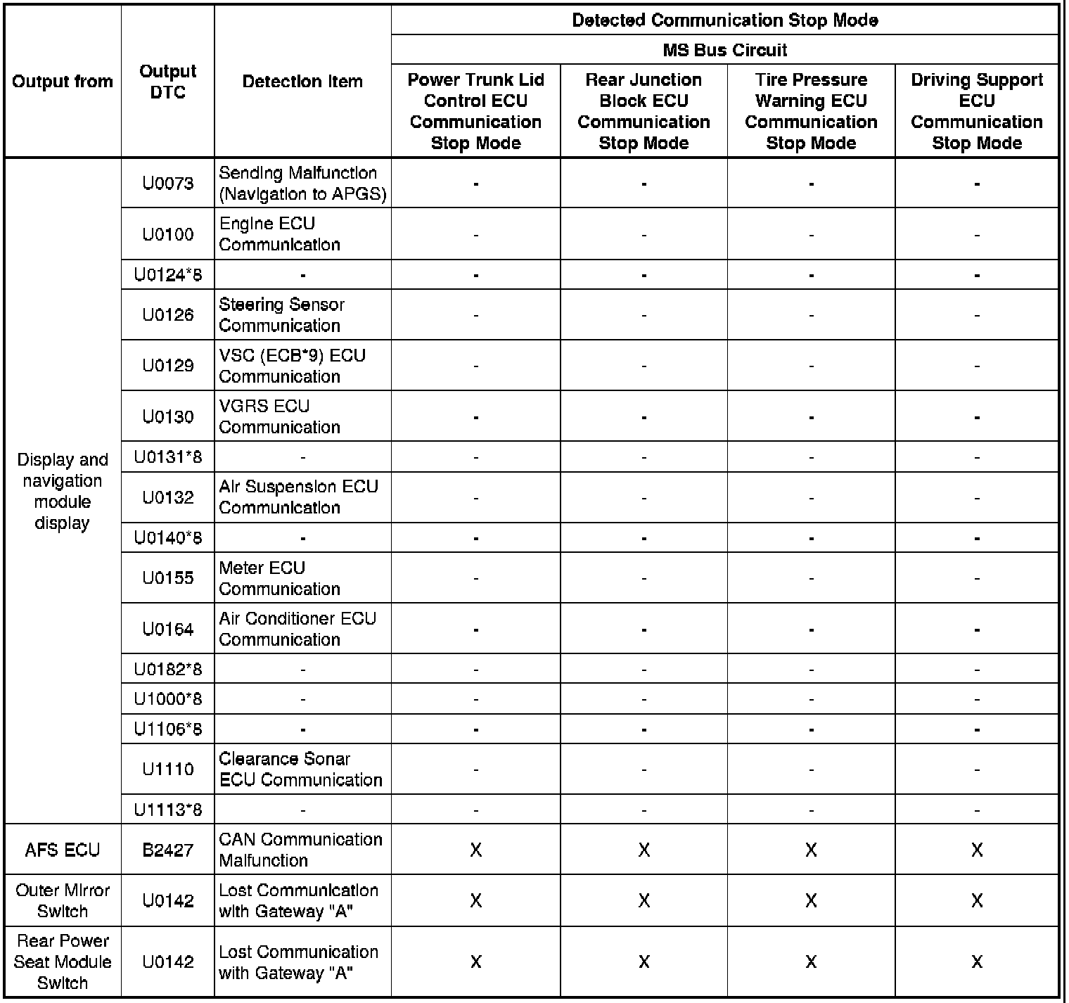* *8: The DTC is not output to the Techstream. It is only output to the screen of the display and navigation module display.