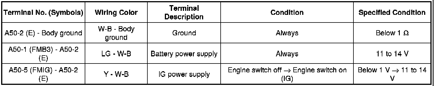 (b) If the result is not as specified, there may be a malfunction on the wire harness side.